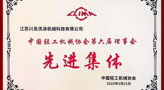江蘇川島榮獲中國輕工機械協(xié)會第六屆理事會先進集體